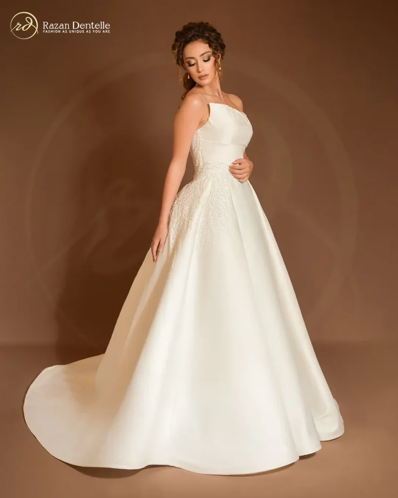 FIONA is a look made for the ultra glam bride who wants a sensual twist. From the front, this fabulous gown shows off a pronounced,
